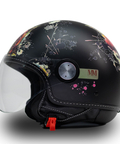 Il Casco Tattoo Rose Nero è pensato per chi vive la moto come linguaggio personale: base nera, rose in stile tattoo e un equilibrio grafico pulito che si riconosce subito, senza diventare "rumoroso". La grafica floreale aggiunge carattere e contrasto, trasformando il casco in un elemento di stile da usare ogni giorno in città. E sotto l'estetica c'è sostanza: qualità tipica da casco jet Made in Italy e cura artigianale nei dettagli, per chi non vuole un casco qualunque.