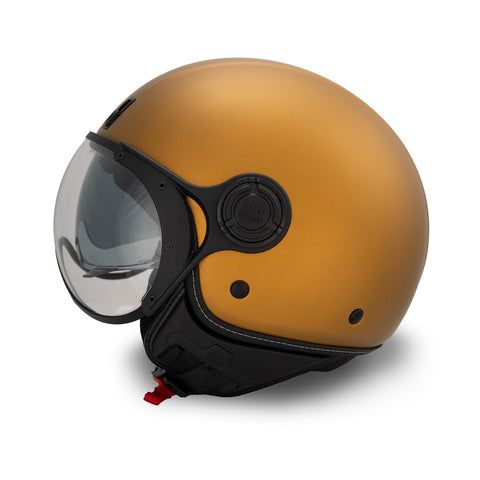 Assolutamente sì. Il jet è ideale per la città: campo visivo ampio, facile da indossare e togliere, leggero, pratico. La doppia visiera ti permette di affrontare tunnel e tratti soleggiati senza fermarti. L'oro ocra porta solo un po' di calore vintage al tragitto quotidiano.