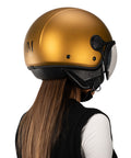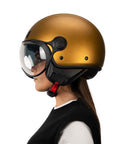 Il Casco Jet A-Ventura Oro della linea Monocromo unisce la qualità costruttiva MM Independent a una tonalità calda e avvolgente. Non è un oro cromato luccicante: è un ocra intenso effetto oro, terroso e vintage, che richiama i colori delle moto classiche anni '70 e i tramonti californiani. Realizzato completamente in Italia con calotta di ultima generazione e doppia visiera, è la scelta per chi cerca un colore caldo e distintivo con anima retrò.