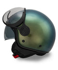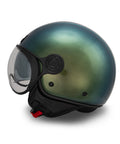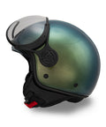 Casco jet verde cangiante MM Independent: effetto camaleonte, doppia visiera