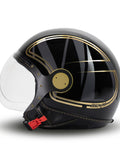 Il Casco Jet Elegant in Black Gold è pensato per chi ama i contrasti giusti: nero profondo e accento oro, senza eccessi, con una presenza discreta che si fa notare solo da chi sa guardare. È un casco jet elegante da città, facile da abbinare e coerente con outfit diversi, con una qualità italiana che si sente nella cura delle finiture e nell'equilibrio complessivo del design.